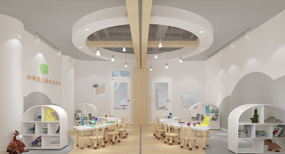 本案例中金博大郑州早教中心设计公司设计时,围绕着为幼儿提供安全、舒适的游玩和学习环境来展开早教中心案例设计。