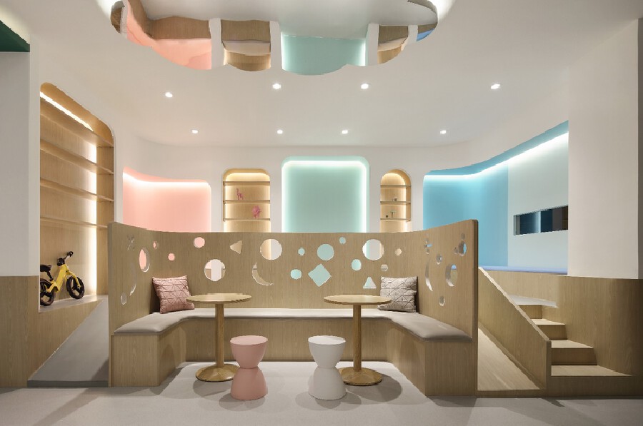把自然搬进室内,将自然美学和儿童情商教育相结合,让孩子健康、自信、茁壮成长。通过顶部光源,墙面装饰,各个季节的特定代表动植物的元素体现。让孩子们从进入教室的一刻起就在潜意识里开始去接触和了解自然,把儿童情商教育融入到整体的环境中,事半功倍。让孩子们建立最初的美学观和世界观。