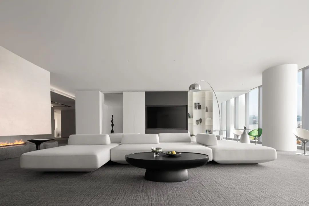 一切化繁为简,抽象装饰画与极简茶桌让东西方文化互相融合,随着时代的推进符合现代化的生活方式,靠窗而坐,于此对话交流拉近心与心的距离。黄与蓝的配色恰如其分在黑白的空间中点缀出色彩,瞬间调动起人的视觉感官,与室外的景色交相呼应,有如拥有生命般鲜活跃动。
